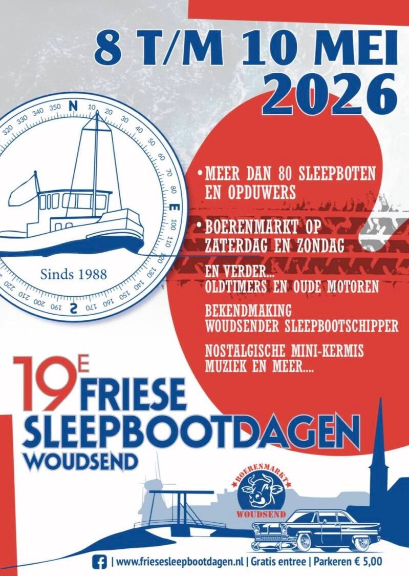 Meer dan 80 Sleepboten en opduwers, oldtimers en oude motoren, zaterdag & zondag Boerenmarkt, bekendmaking Woudsender Sleepbootschipper, nostalgische mini-kermis, muziek en meer…