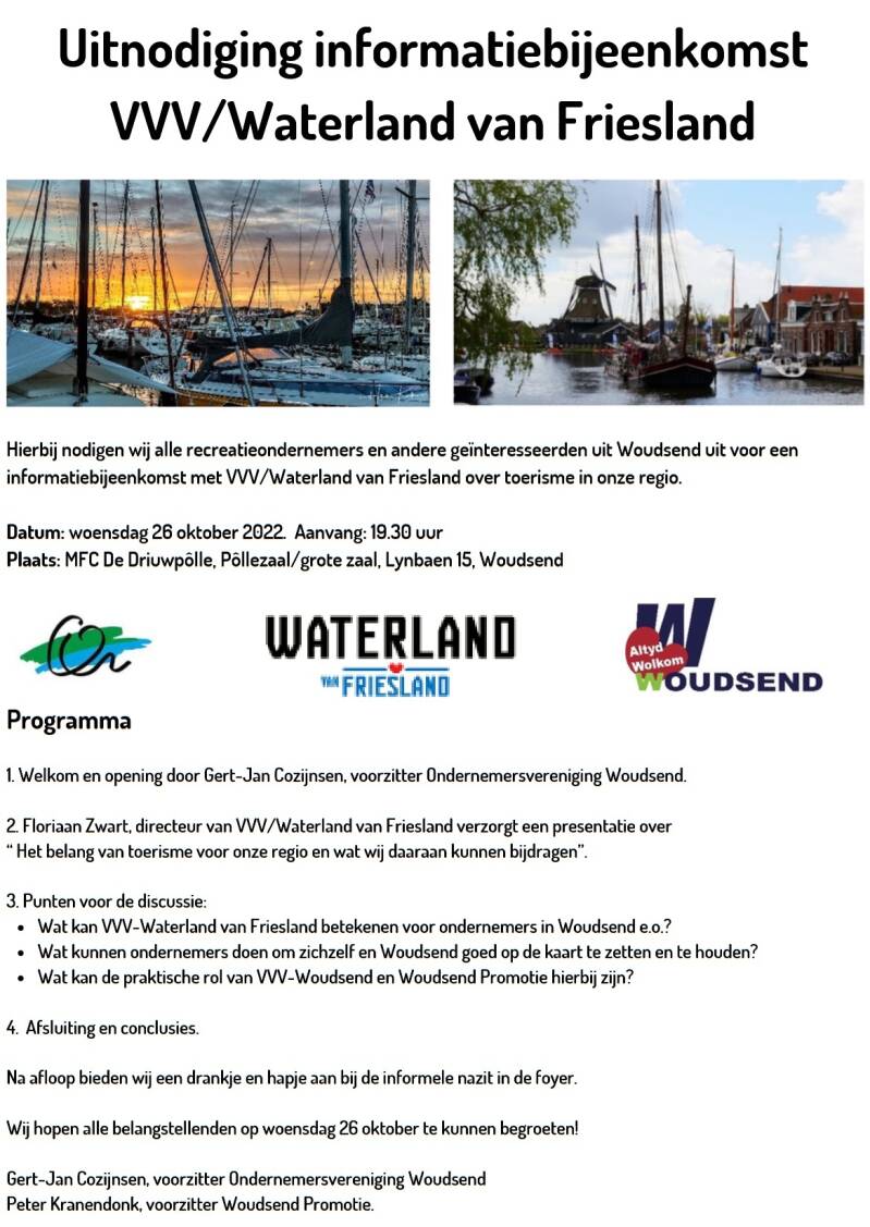 VVV / Waterland van Friesland houdt in samenwerking met de ondernemingsvereniging en Dorpsbelangen een informatiebijeenkomst.