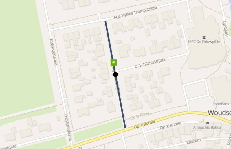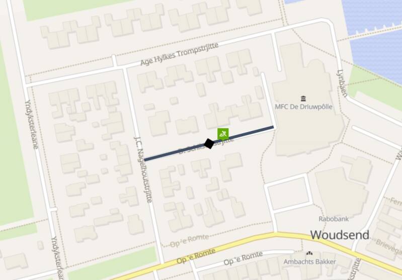 Van maandag 03 april tot en met vrijdag 28 april 2023 is een deel van de rijbaan Age Hylkes Trompstrjitte, vanaf de kruising met J.C. Nagelhoutstrjitte tot de rijbaan Lynbaen, en een deel van de rijbaan Lynbaen, ter hoogte van het dorpshuis, in Woudsend afgesloten voor het doorgaand verkeer. De genoemde verkeersafsluiting geldt niet voor voetgangers. De dokterspost in het dorpshuis is wel bereikbaar.
