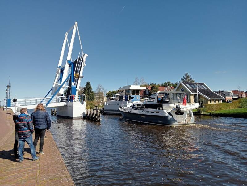 Vanaf 1 april draaien de bruggen in Friesland weer voor het nieuwe watersportseizoen. Op de brug van Woudsend heeft men er duidelijk zin in.