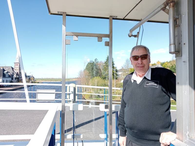 Brugwachter Peter uit Heeg heeft ervaring opgedaan bij de bruggen in Heerenveen én het vak geleerd van ervaren burgwachtster Martha uit Woudsend (van de bekende brugwachtersfamilie Bijlsma).