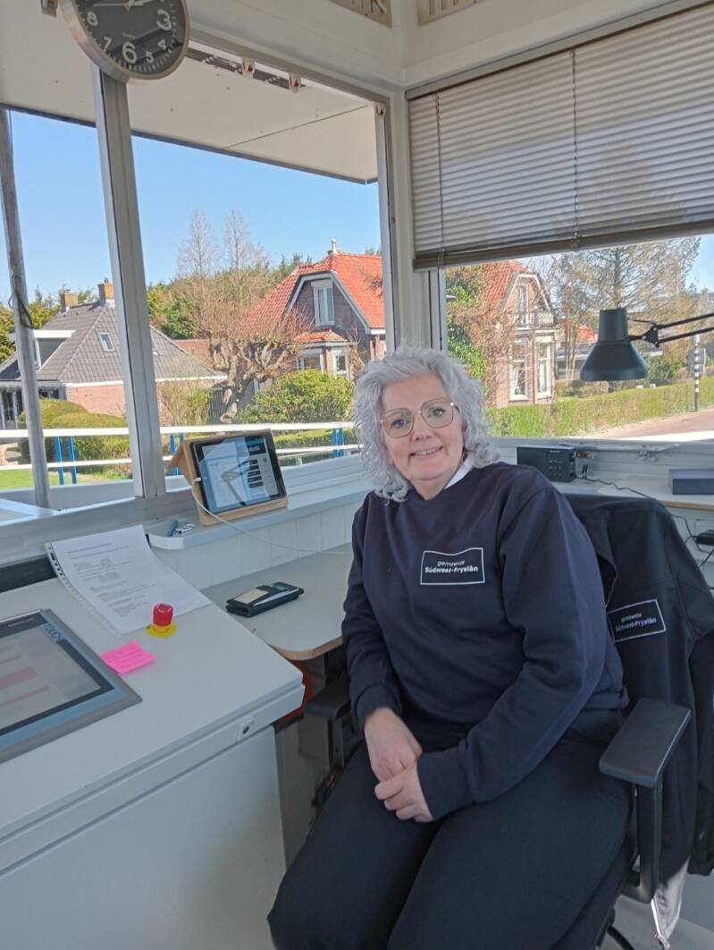 Barbara uit Sneek is ook goed bekend met de watersport als voormalig havenmeester van Joure. Zij is ook blij met deze mooie plek in Woudsend en haar taak als brugwachter.