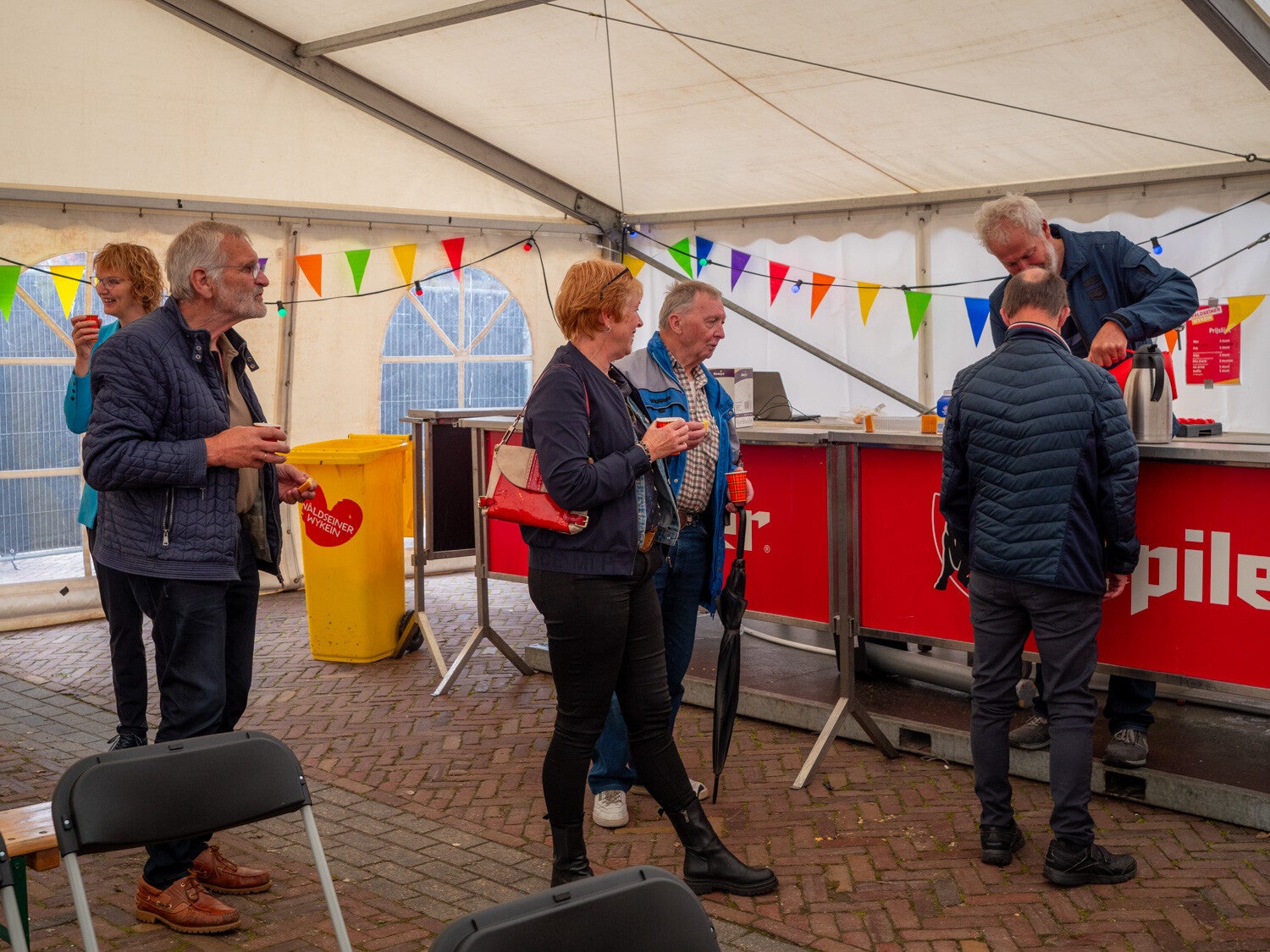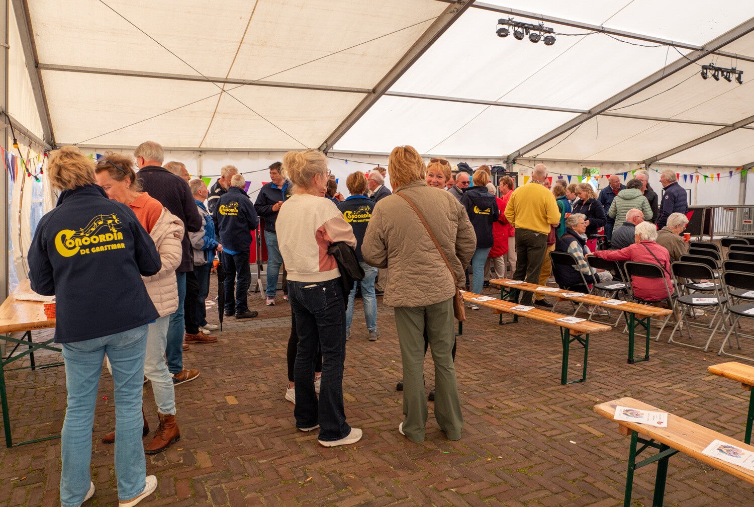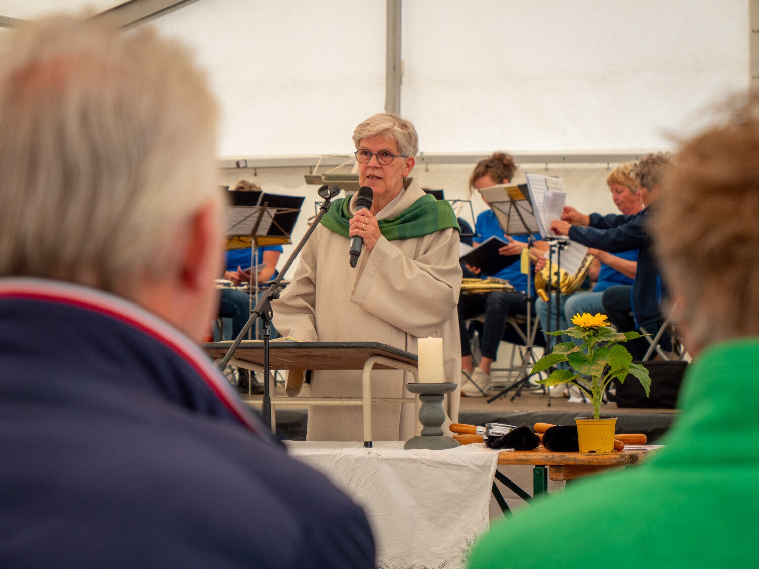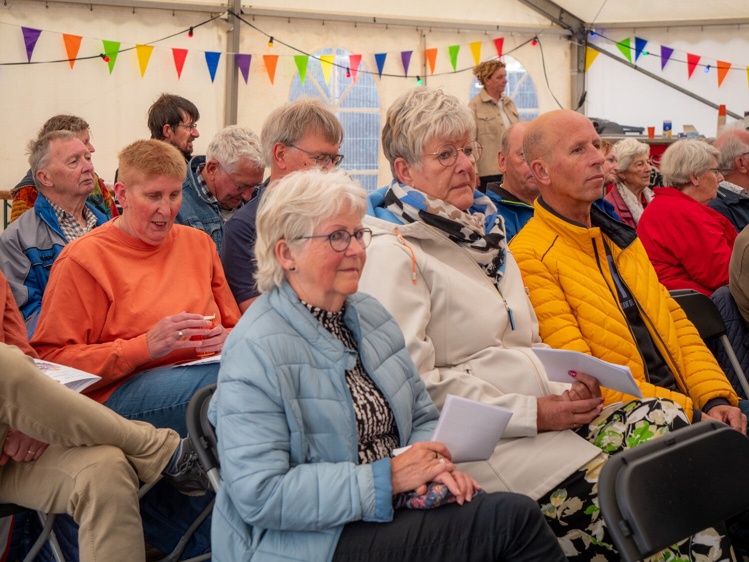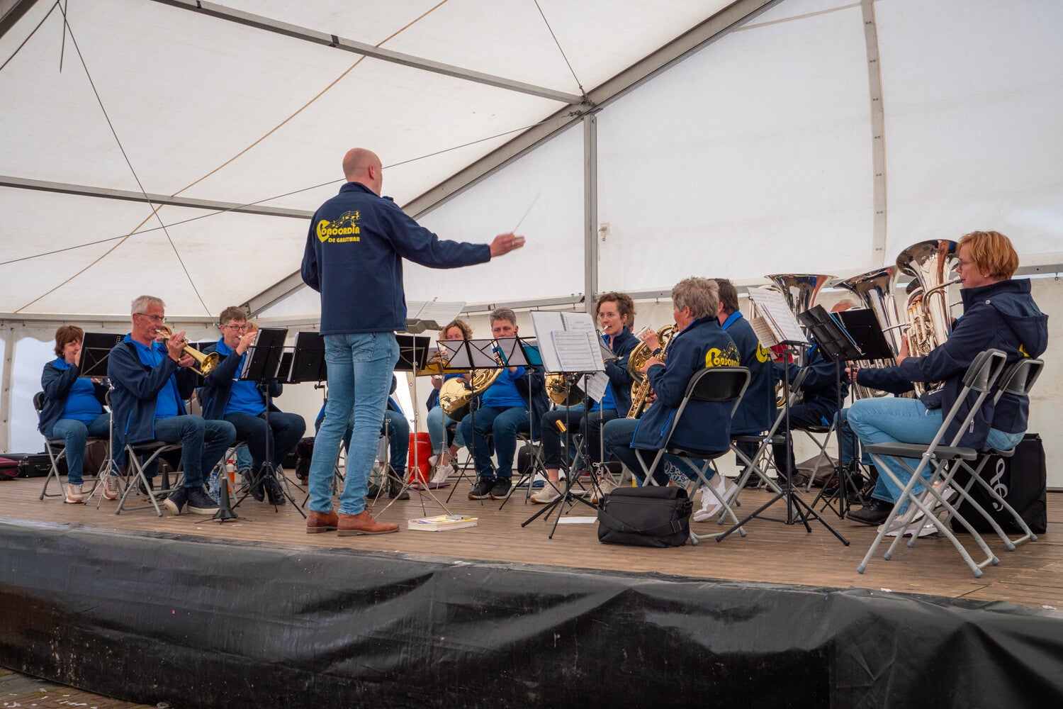 Op deze Vaderdag morgen was er om half elf in de tent een gezamenlijke kerkdienst onder muzikale begeleiding van Christelijke Muziekvereniging Concordia uit Gaastmeer. De dienst had als thema Groeien & Bloeien. Er waren ca. 130 mensen bij de dienst aanwezig en af en toe bleef er buiten de tent iemand even staan luisteren en meegenieten van de muziek gespeeld door de fanfare.