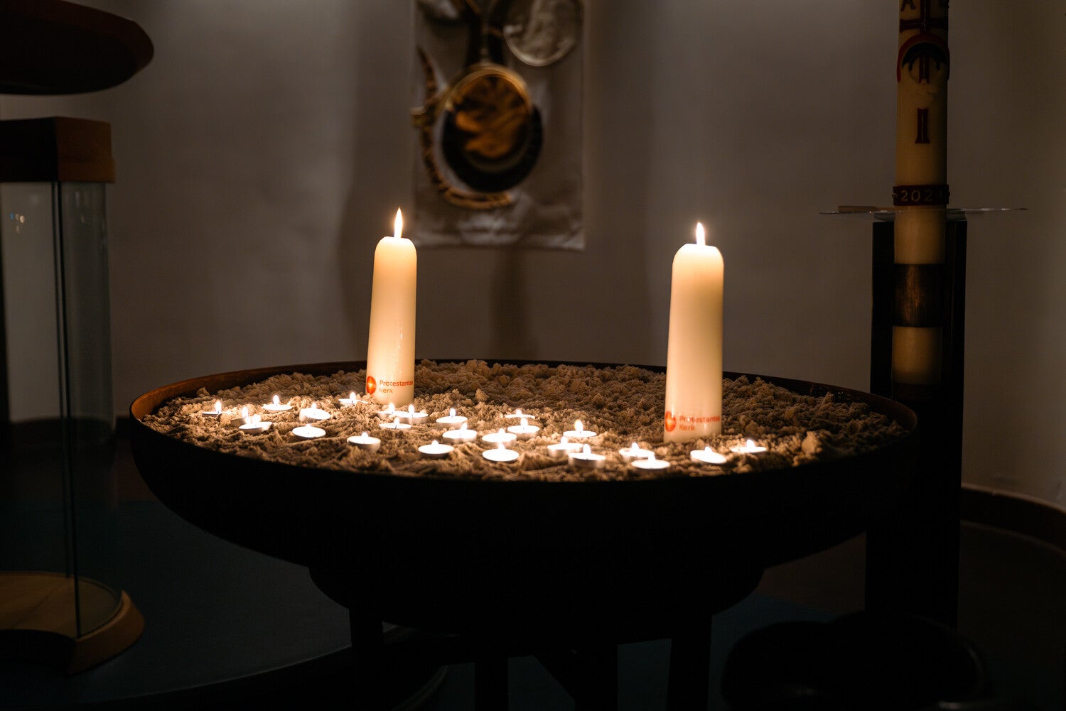 In de Karmel kon vandaag aan het einde van de middag iedereen die het wilde een kaarsje opsteken voor zijn of haar geliefden, familie, vrienden of anderen die gemist worden. Verdriet is voor iedereen herkenbaar en voor iedereen is het anders hoe we met dat verdriet omgaan. Er klonk mooie sfeervolle muziek bij het betreden van de kerk. Het was er rustig en je kon even gaan zitten, even je verhaal kwijt of na het aansteken van de kaars weer weggaan. Voor alle dorpsgenoten in en rond Woudsend, of je nu veel, weinig of helemaal niet gelooft. Je was van harte welkom een lichtje aan te steken voor wie jou lief zijn in de Karmel.