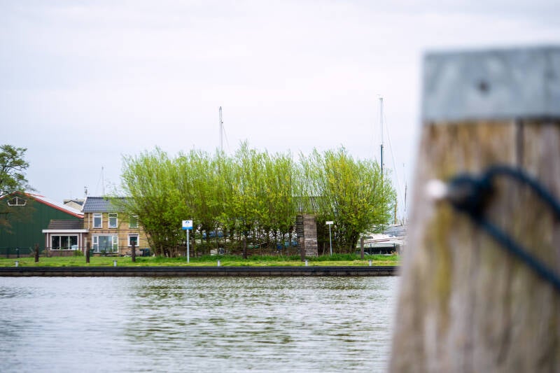 We verzamelen bij Wellewei 1, waar Jacqueline Postma iedereen met het bootje naar de overkant brengt.