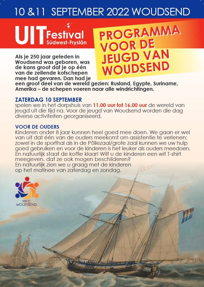 In Woudsend worden dit jaar de jaarlijkse Open Monumentendagen weer gecombineerd met het Uitfestival Súdwest-Fryslân. Met een jubileumeditie: Voor de tiende keer Monumenten, Muziek en Meer met in het hele dorp activiteiten voor jong en oud.