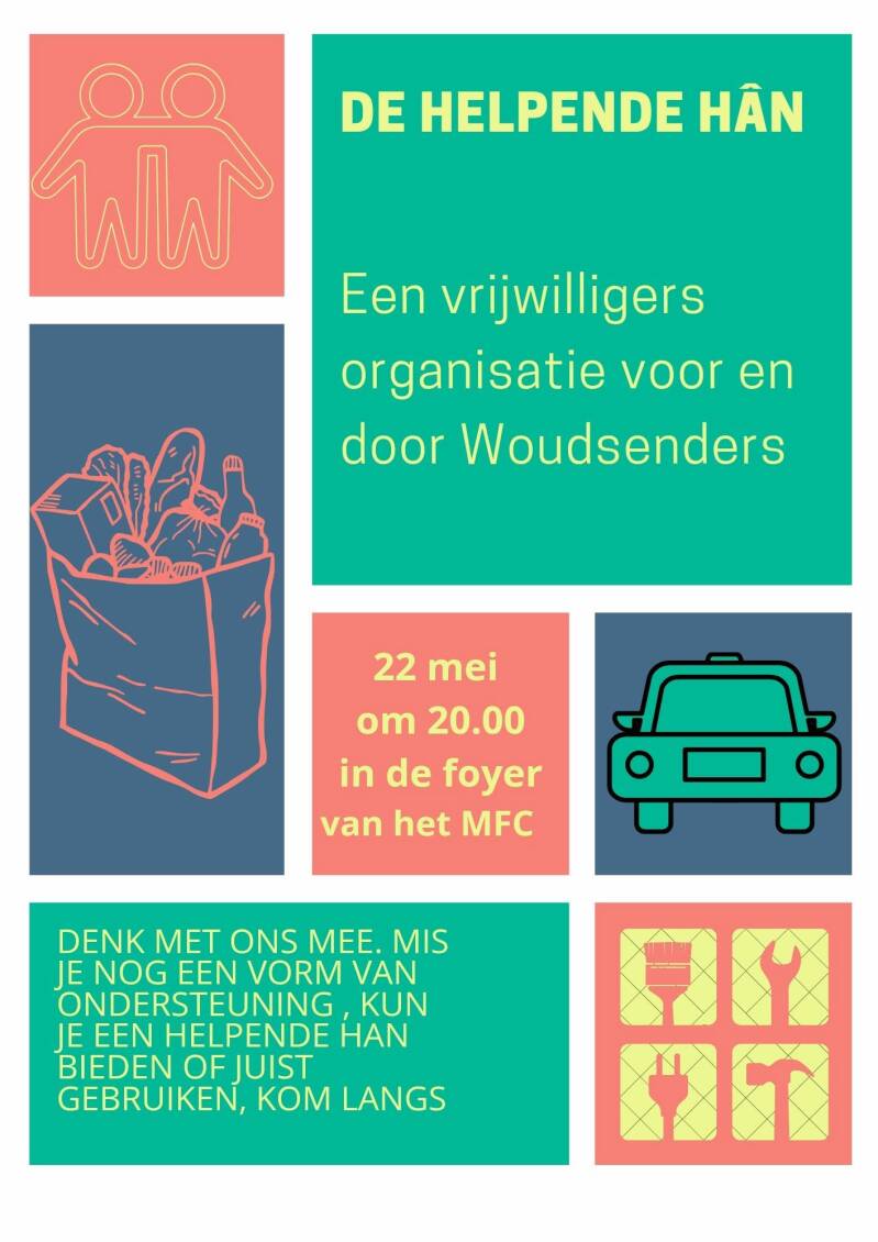 Op donderdag 22 mei om 20.00 uur ben je van harte welkom in de foyer van het MFC. We gaan dan in gesprek over het opzetten van Helpende Hân, een nieuw vrijwilligersinitiatief voor Woudsend.