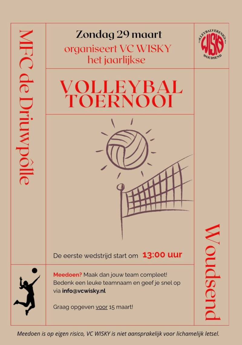 Bedenk een leuke teamnaam en geef je snel op voor 15 maart op via info@vcwisky.nl
